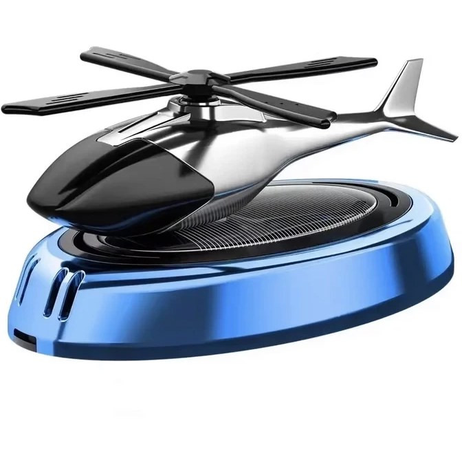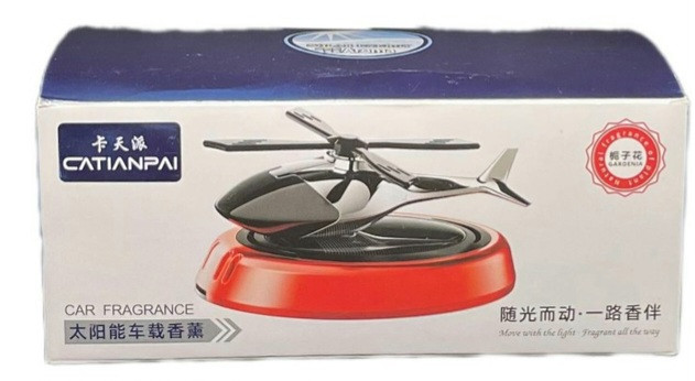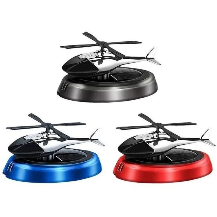این محصول خاص مدل خورشیدی می باشد که بدون نیاز به باطری با نور خورشید پره های هلیکوپتر شروع به چرخیدن می کند و این محصول را میتوان روی داشبورد یا هر سطح صافی چسباند و این محصول دارای اسانس قطره ای خوشبو ادکلنی و قوی است که با اتمام اسانس می توان با هر اسانس که خودتون علاقه داشتید شارژ کنید . این محصول هم خوشبوکننده است هم تزیینی که زیبایی خاصی به خودرو شما می دهد
