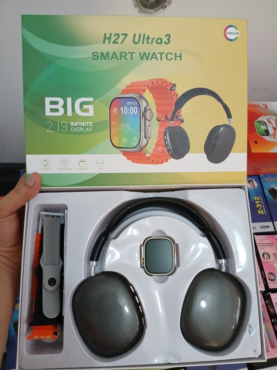 اسمارت واچ اولترا 3 بزرگ هدفون بلوتوثی مشکی۴ عدد بند مچی کابل شارژ......ساعت هوشمند و هدفون بیسیم با امکانات پیشرفتهاین مجموعه، ترکیبی از فناوری روز و طراحی شیک است که زندگی روزمره شما را آسانتر و لذتبخشتر میکند. نمایشگر رنگی لمسی با وضوح بالا اتصال بیسیم و پشتیبانی از بلوتوث 5.0 پشتیبانی از برنامههای سلامت و تناسب اندام طراحی مدرن و سبک برای راحتی در استفاده روزمره مزایا: استفاده آسان، عمر باتری طولانی، کیفیت صدای عالی هدفون، قابلیتهای چندکاره و هماهنگ با گوشیهای هوشمند...ارسال به سراسر کشور..با منو متفاوت...پیام.تماس .موزیک. اندازه گیری فشار خون ، ضربان قلب، اکسیژن خون ، قدم و ..