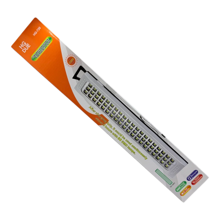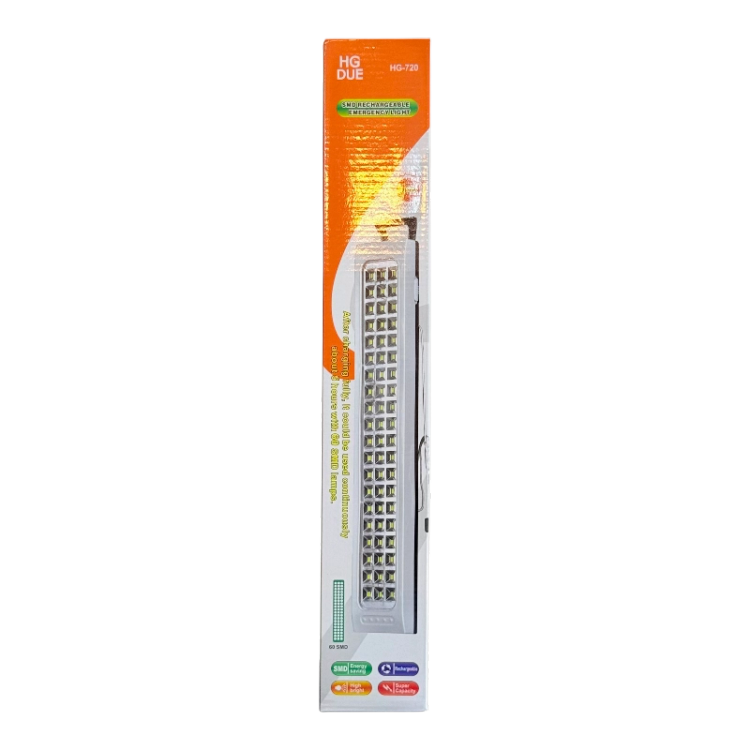 چراغ اضطراری HG DUE مدل HG-720 یک منبع نور قدرتمند و قابل اعتماد برای زمانهایی است که به روشنایی پایدار نیاز دارید. این چراغ با ۶۰ عدد LED SMD فوقالعاده روشن، نور گسترده و شفافی ایجاد میکند که برای محیطهای بزرگ و کوچک ایدئال است.بدنه سبک، دسته قابلحمل، محل نصب دیواری، و باتری شارژی با ظرفیت بالا باعث شده تا این محصول برای خانه، سفر، کمپینگ، کارگاه و حتی فروشگاه گزینهای فوقالعاده باشد.