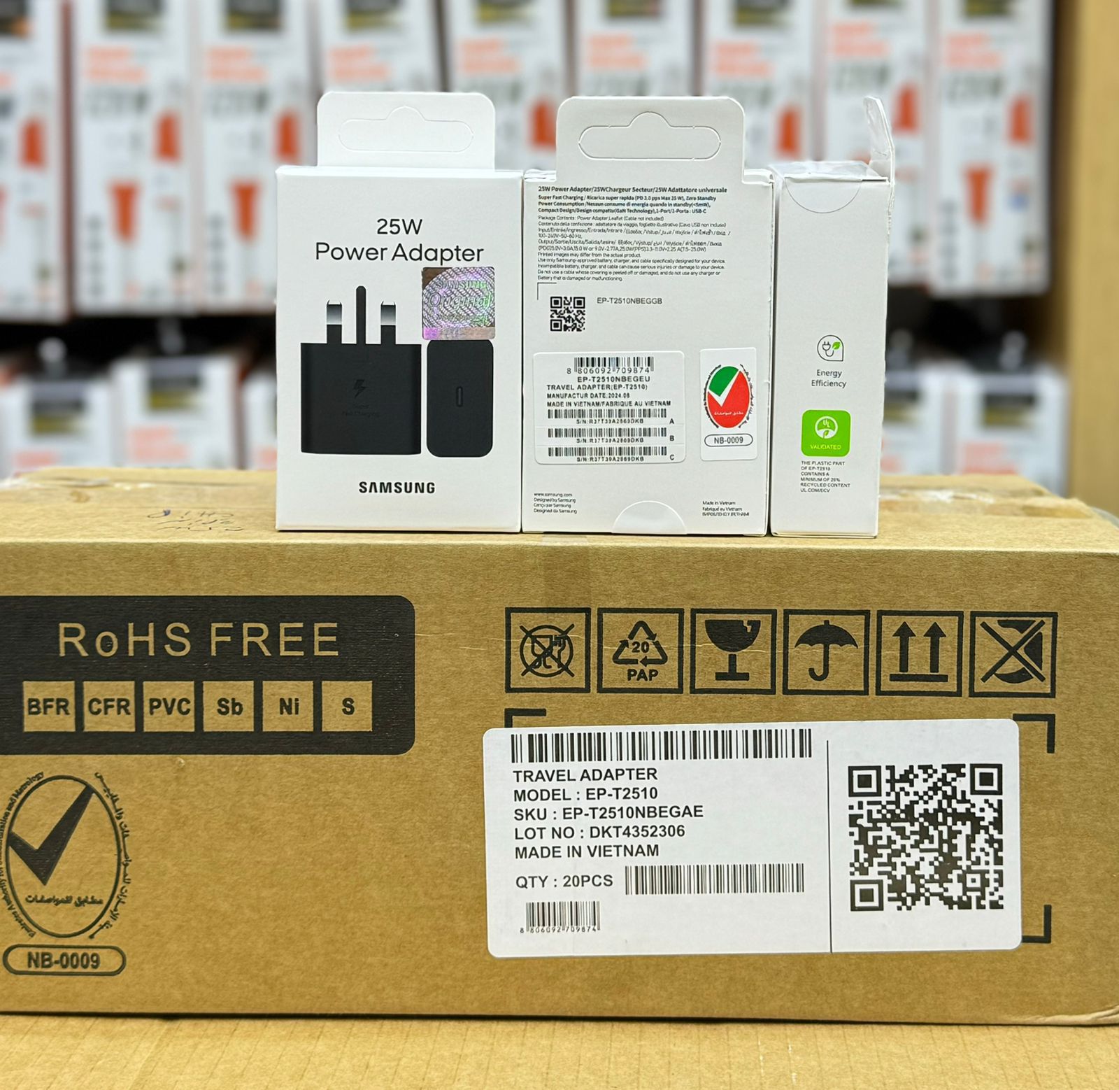 پک ده عددی شارژر سامسونگ سریع مدل EP-T2510 ظرفیت ۲۵ وات سه پین بارکد دار بدون کابل ویتنام اصل super fast charging
